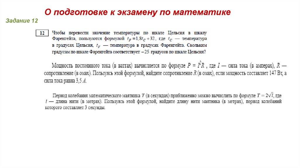 О подготовке к экзамену по математикеЗадание 12
