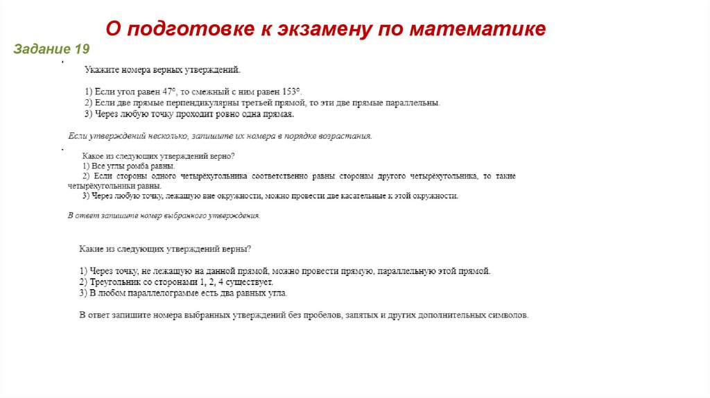 О подготовке к экзамену по математикеЗадание 19