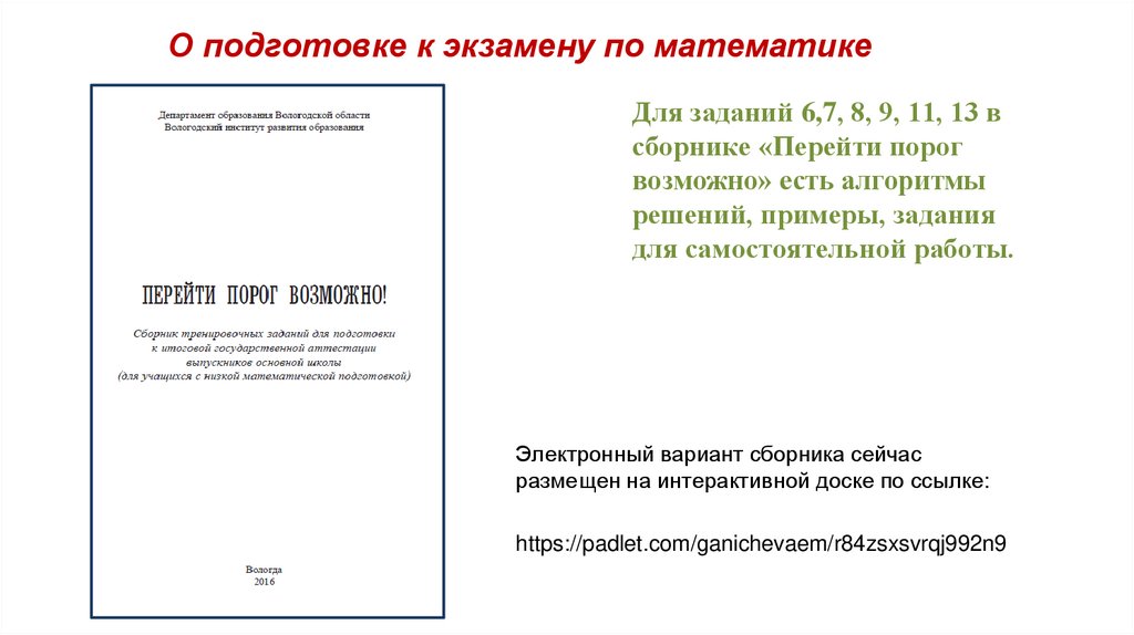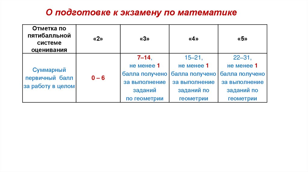 О подготовке к экзамену по математикеОтметка по