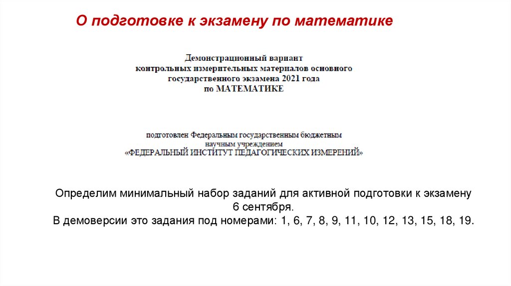 О подготовке к экзамену по математикеОпределим минимальный набор заданий для активной подготовки к экзамену