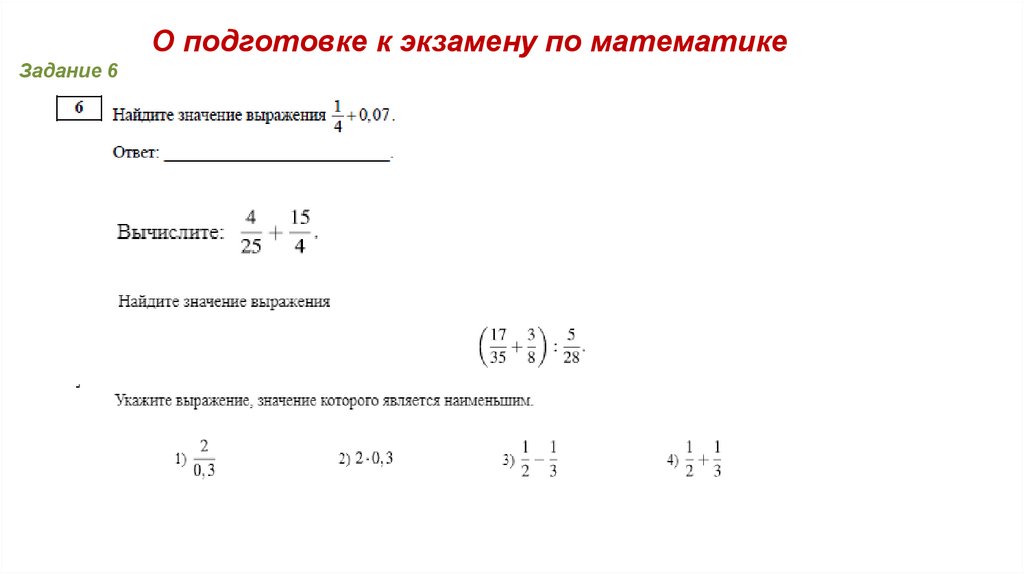 О подготовке к экзамену по математикеЗадание 6