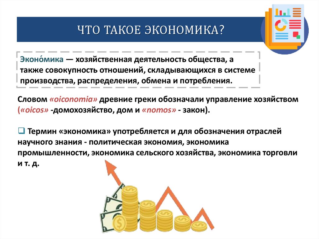 ЧТО ТАКОЕ ЭКОНОМИКА?Эконо́мика — хозяйственная деятельность общества, а