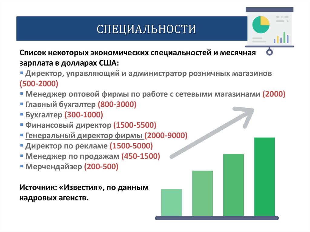 СПЕЦИАЛЬНОСТИСписок некоторых экономических специальностей и месячная