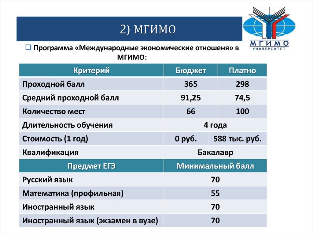 2) МГИМОПрограмма «Экономическая политика» в МГИМО:
