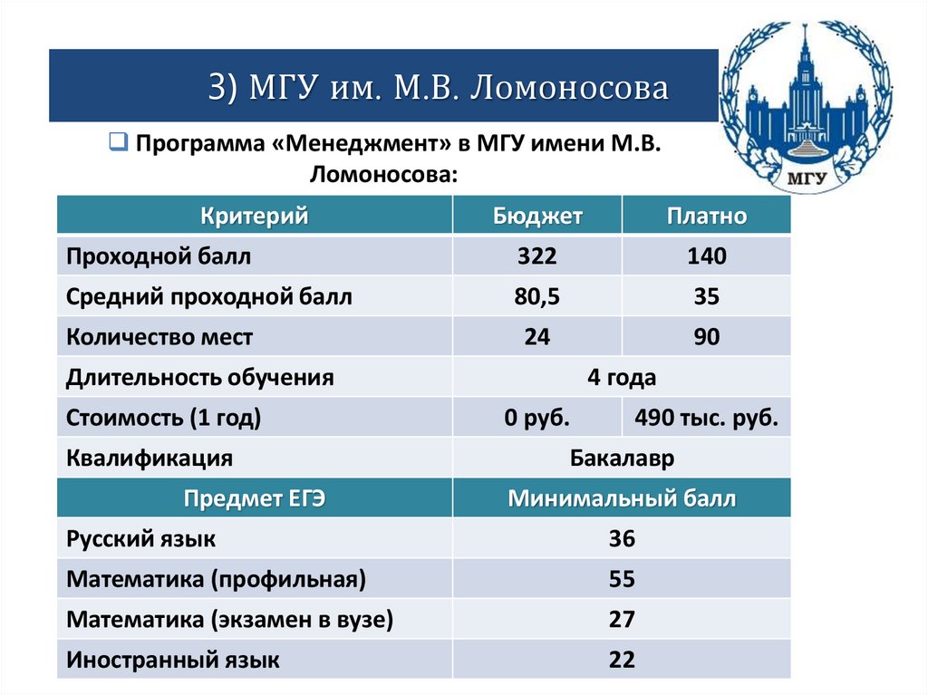 3) МГУ им. М.В. ЛомоносоваПрограмма «Менеджмент» в МГУ имени М.В.