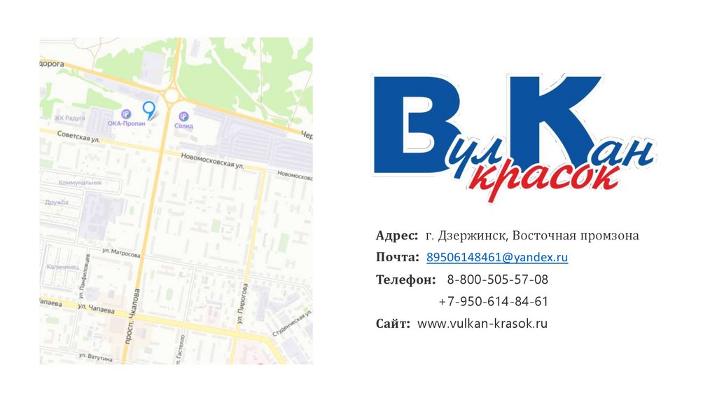 Адрес: г. Дзержинск, Восточная промзонаПочта: 89506148461@yandex.ru