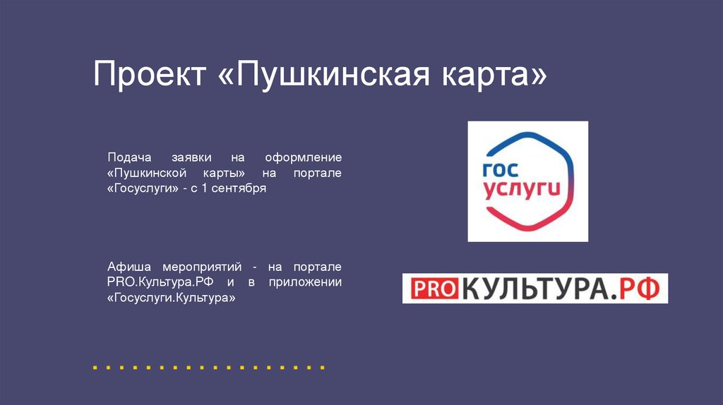 Проект «Пушкинская карта»Подача