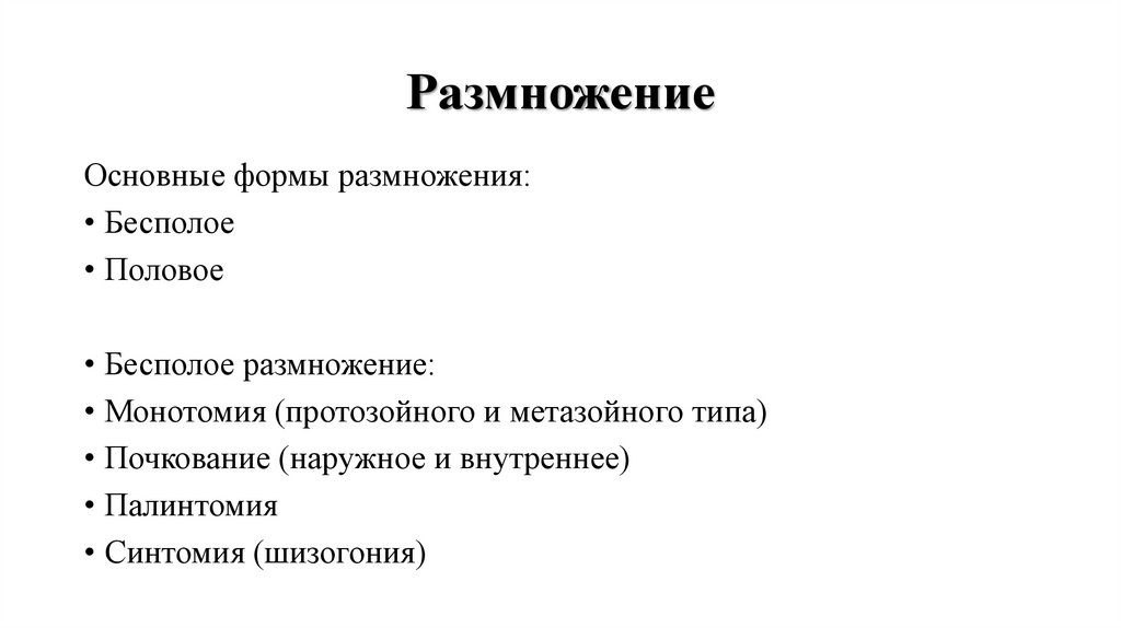 РазмножениеОсновные формы размножения: