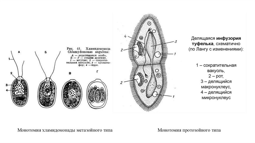 Монотомия хламидомонады метазойного типаМонотомия протозойного типа