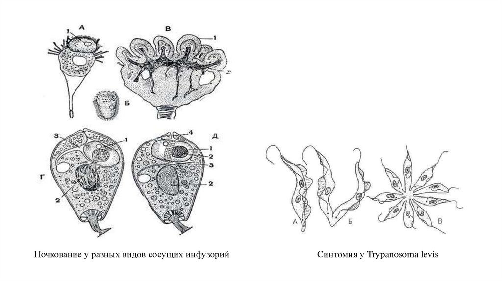 Почкование у разных видов сосущих инфузорийСинтомия у Trypanosoma levis