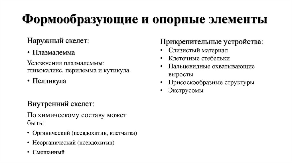 Формообразующие и опорные элементыНаружный скелет: