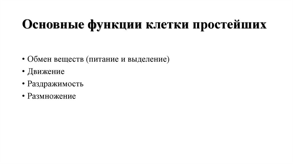 Основные функции клетки простейших• Обмен веществ (питание и выделение)