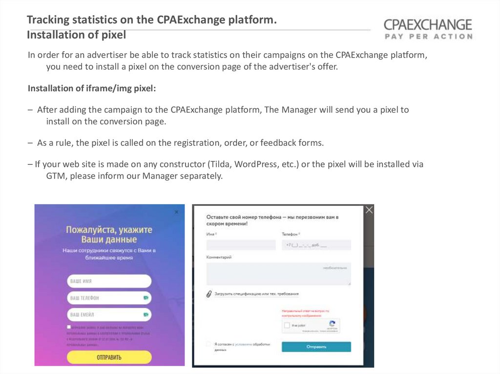 – After adding the campaign to the CPAExchange platform, The Manager will send you a pixel to