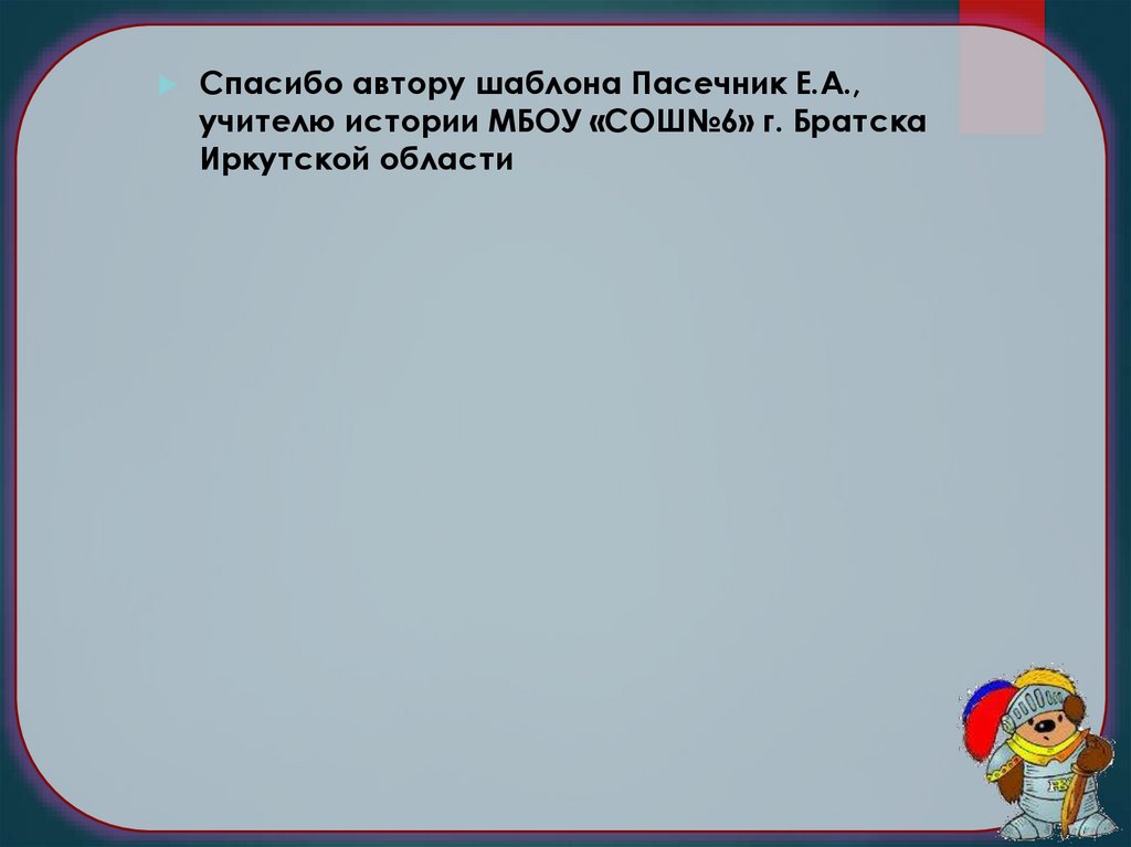 Спасибо автору шаблона Пасечник Е.А.,
