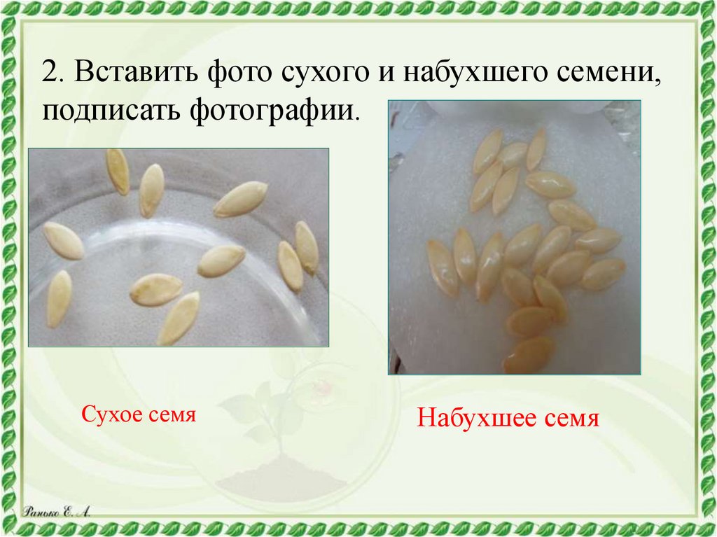 2. Вставить фото сухого и набухшего семени,подписать фотографии.