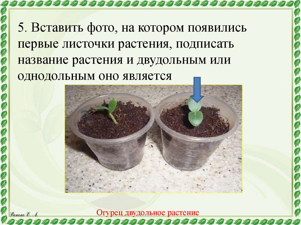 5. Вставить фото, на котором появилисьпервые листочки растения, подписать