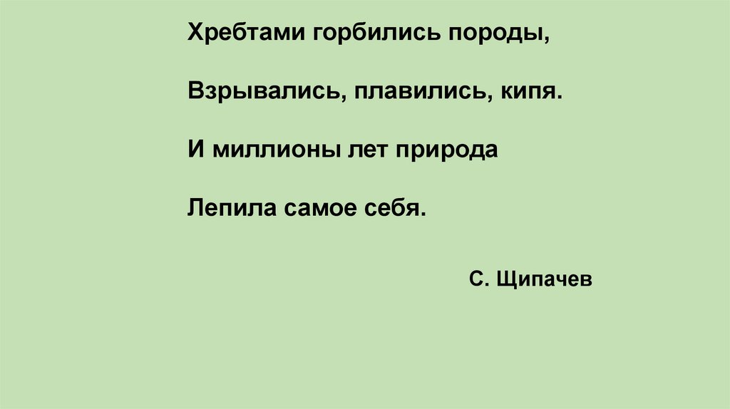 Хребтами горбились породы,Взрывались, плавились, кипя.
