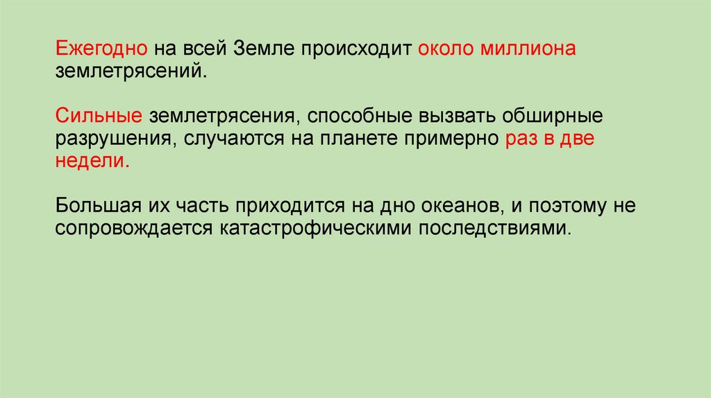 Ежегодно на всей Земле происходит около миллионаземлетрясений.