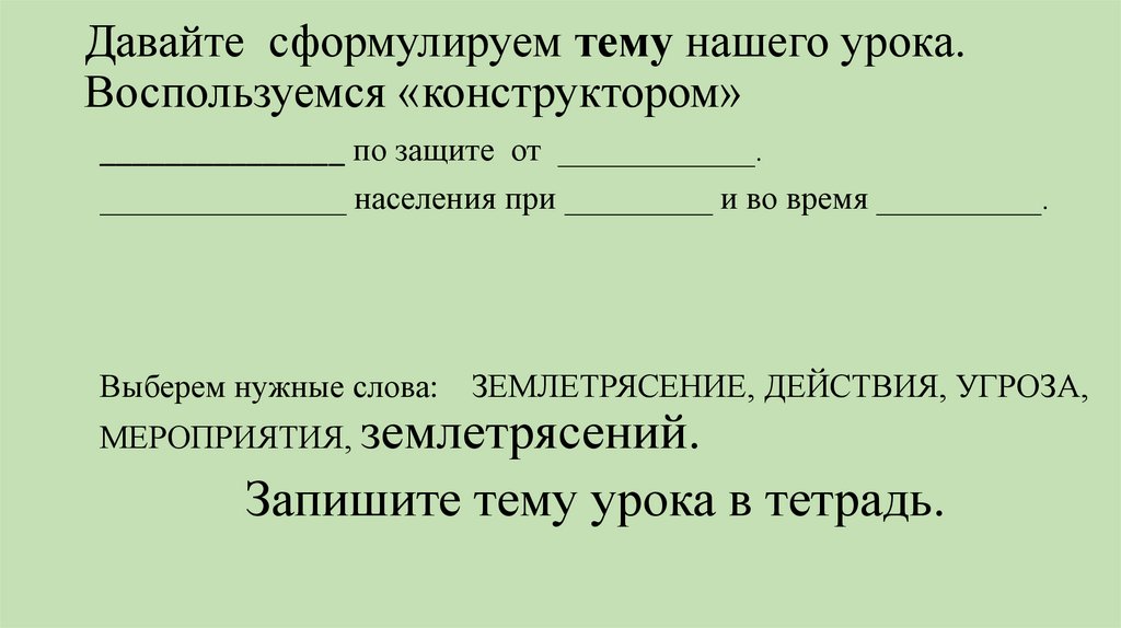 Давайте сформулируем тему нашего урока.Воспользуемся «конструктором»