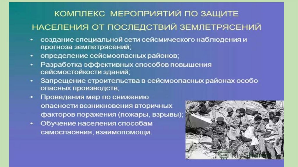 Мероприятия по защите от землетрясений. Действия населения при угрозе и во время землетрясения