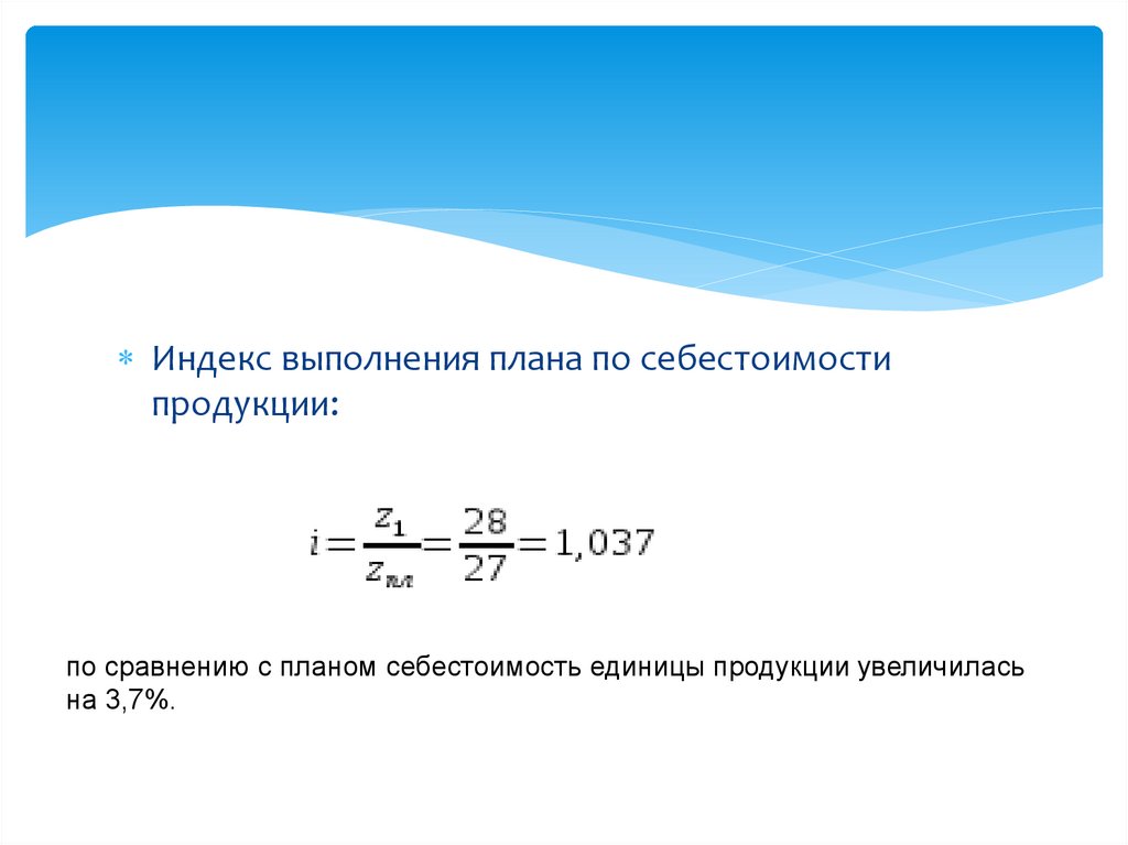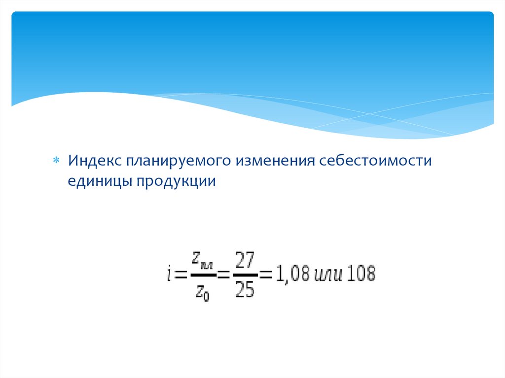 Индекс динамики себестоимости продукции:28/25=1.12 т.е. по сравнению с базисным периодом