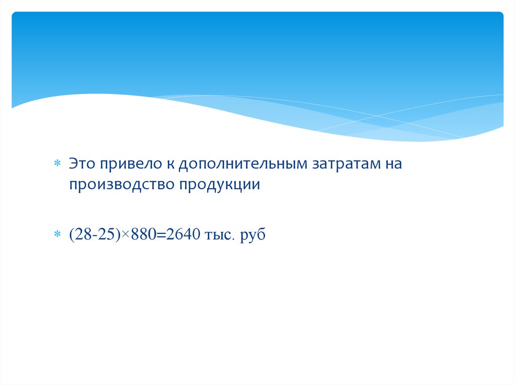 Дополнительные затраты на производствопродукции в связи с этим должны составить