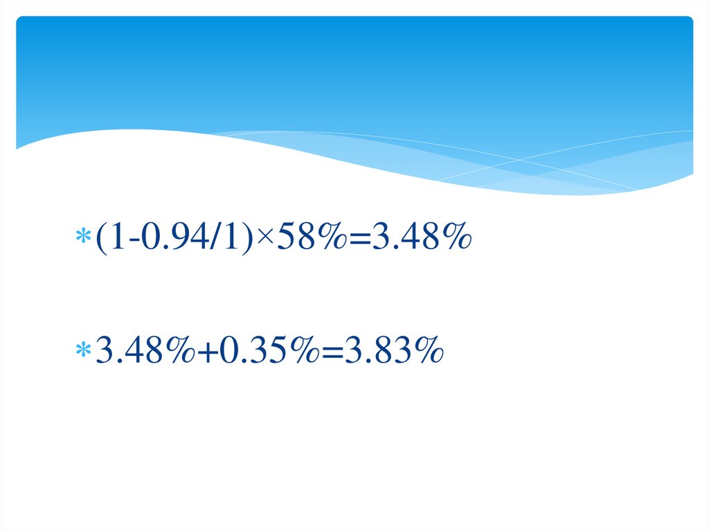 (1-0.94/1)×58%=3.48%3.48%+0.35%=3.83%