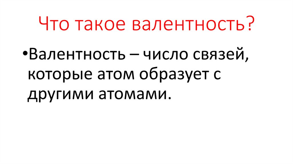 Что такое валентность?•Валентность – число связей,
