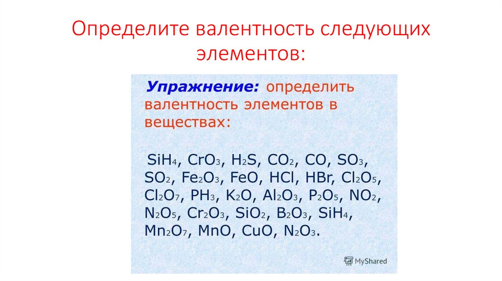 Определите валентность следующихэлементов:
