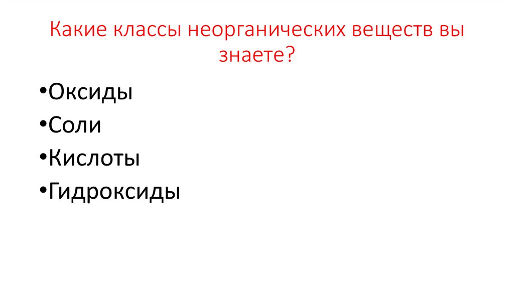 Какие классы неорганических веществ вызнаете?