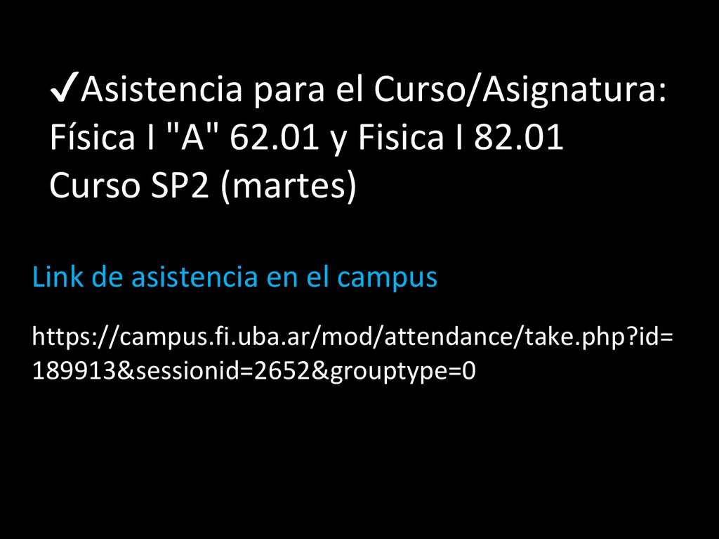 ✔Asistencia para el Curso/Asignatura:Física I "A" 62.01 y Fisica I 82.01
