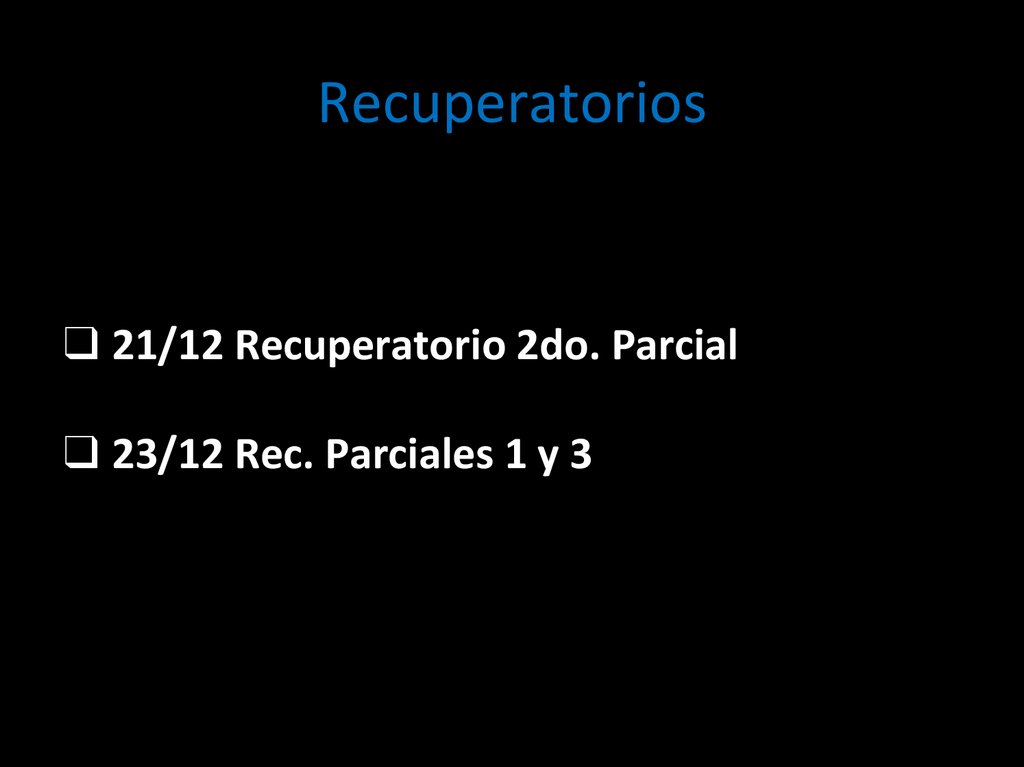 Recuperatorios❑ 21/12 Recuperatorio 2do. Parcial