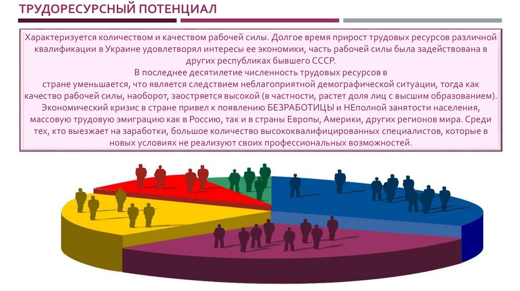 ТРУДОРЕСУРСНЫЙ ПОТЕНЦИАЛХарактеризуется количеством и качеством рабочей силы. Долгое время прирост трудовых ресурсов различной