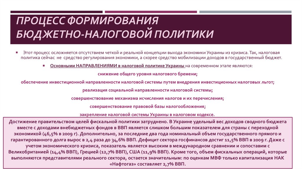 ПРОЦЕСС ФОРМИРОВАНИЯБЮДЖЕТНО-НАЛОГОВОЙ ПОЛИТИКИ