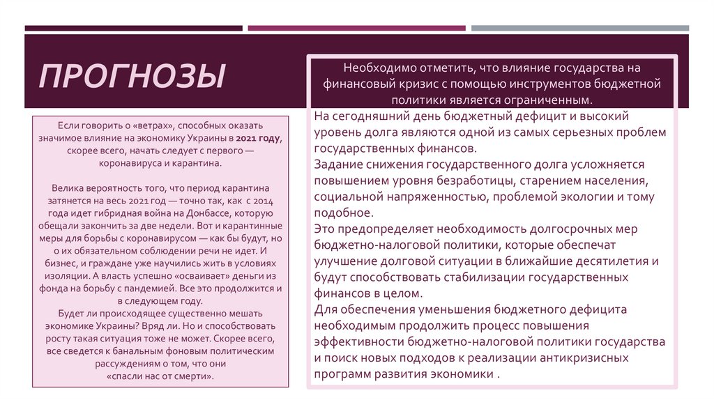БЮДЖЕТНО-НАЛОГОВАЯ ПОЛИТИКА, ПРОГНОЗЫ