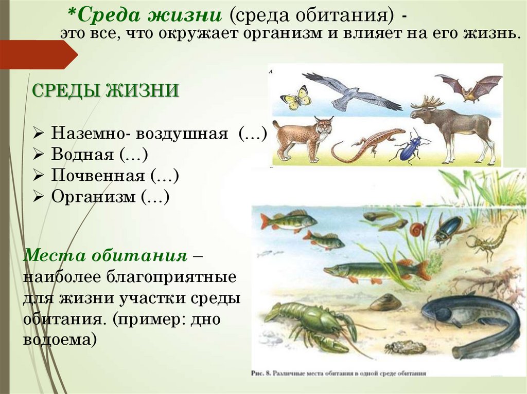 *Среда жизни (среда обитания) -это все, что окружает организм и влияет на его жизнь.
