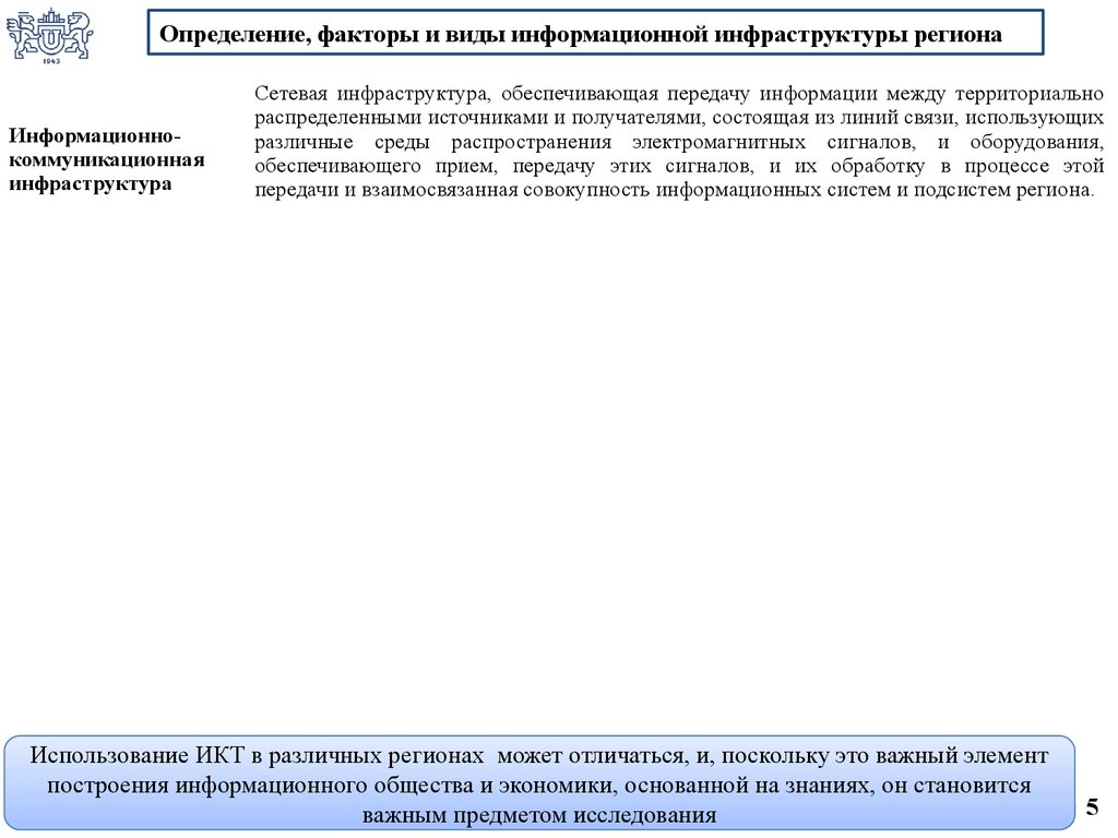 Определение, факторы и виды информационной инфраструктуры регионаИнформационнокоммуникационная