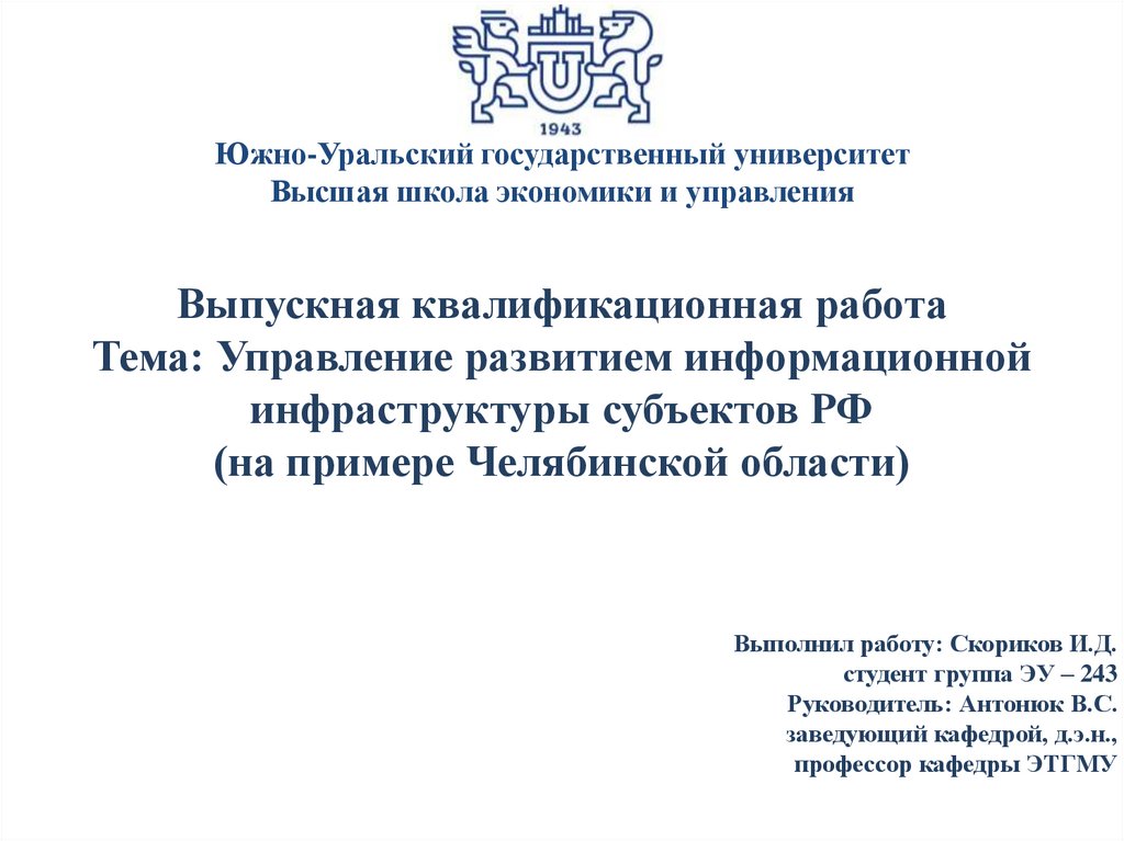 Южно-Уральский государственный университетВысшая школа экономики и управления