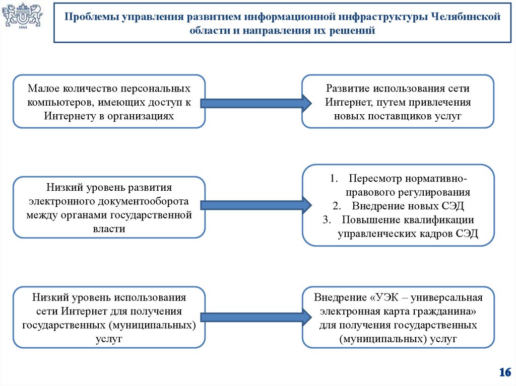 Выявить проблемы развития информационной инфраструктуры Челябинской области и направления их