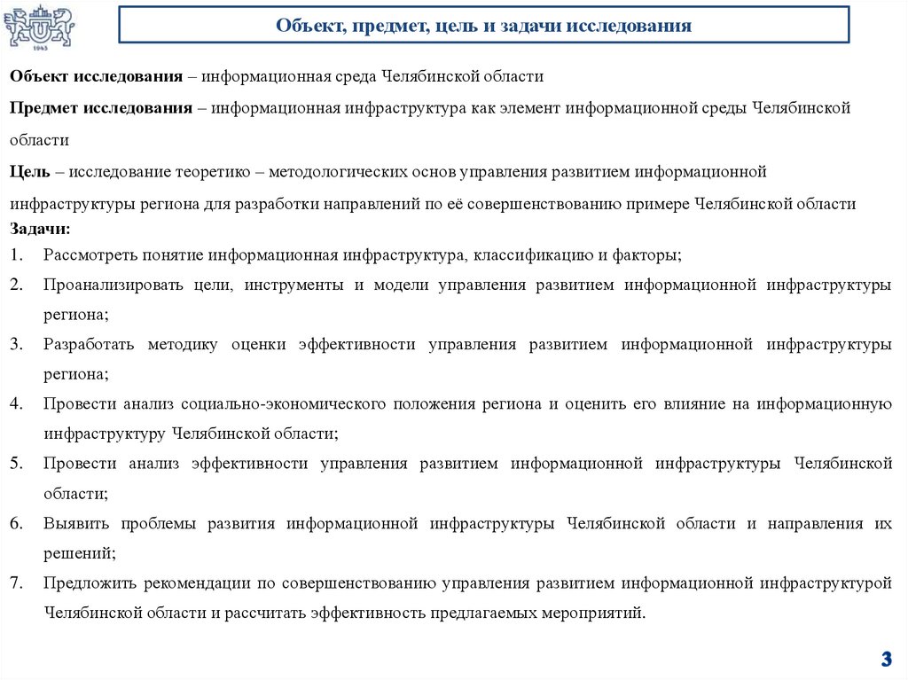 Объект, предмет, цель и задачи исследованияОбъект исследования – информационная среда Челябинской области