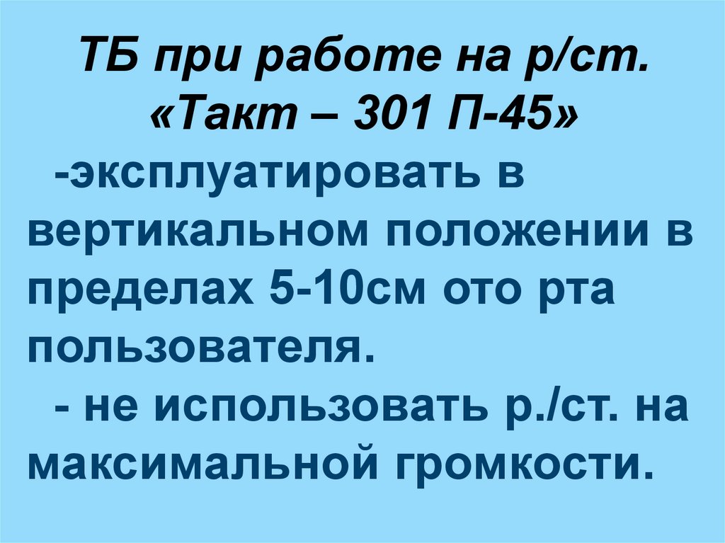 ТБ при работе на р/ст.«Такт – 301 П-45»