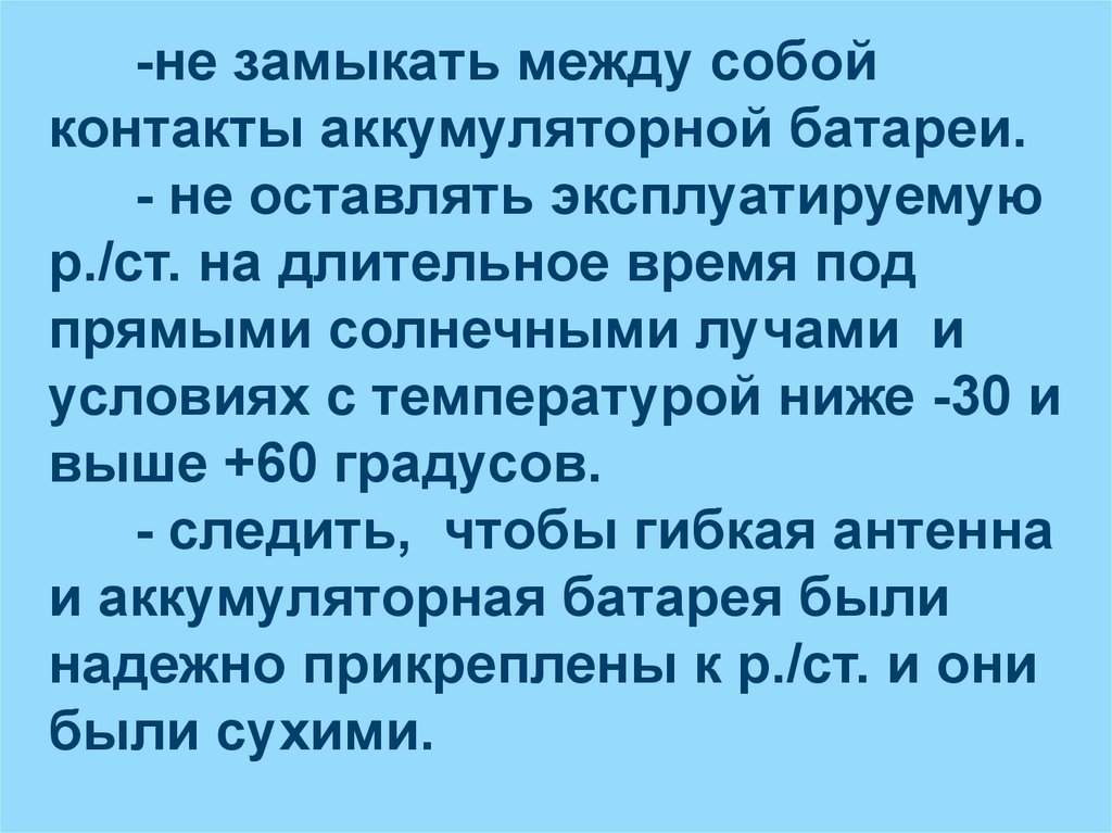 -не замыкать между собойконтакты аккумуляторной батареи.