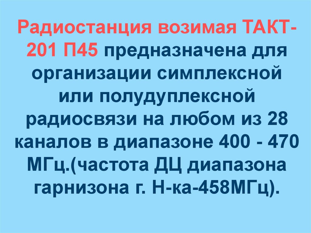 Радиостанция возимая ТАКТ201 П45 предназначена дляорганизации симплексной