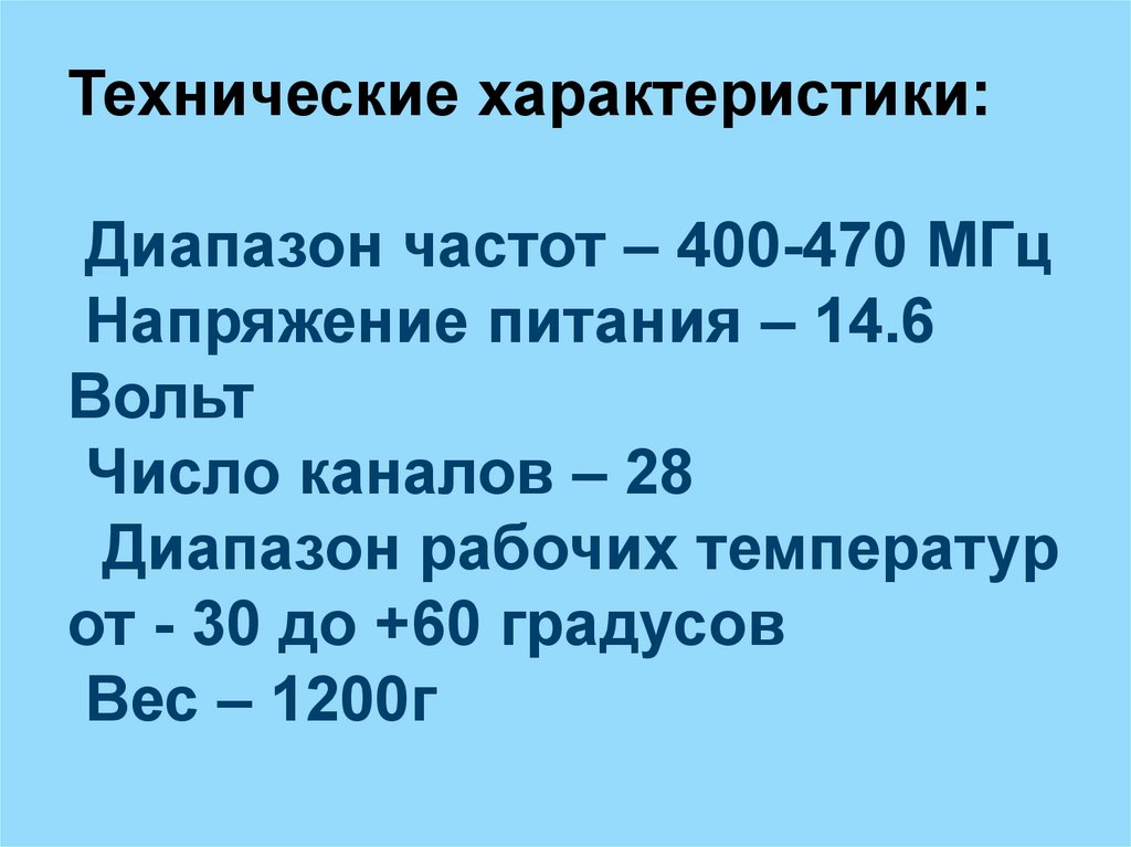 Технические характеристики:Диапазон частот – 400-470 МГц