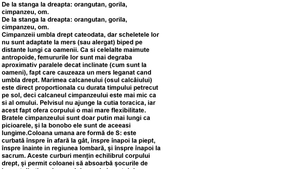 pe sol, deci calcaneul cimpanzeului este mai mic ca