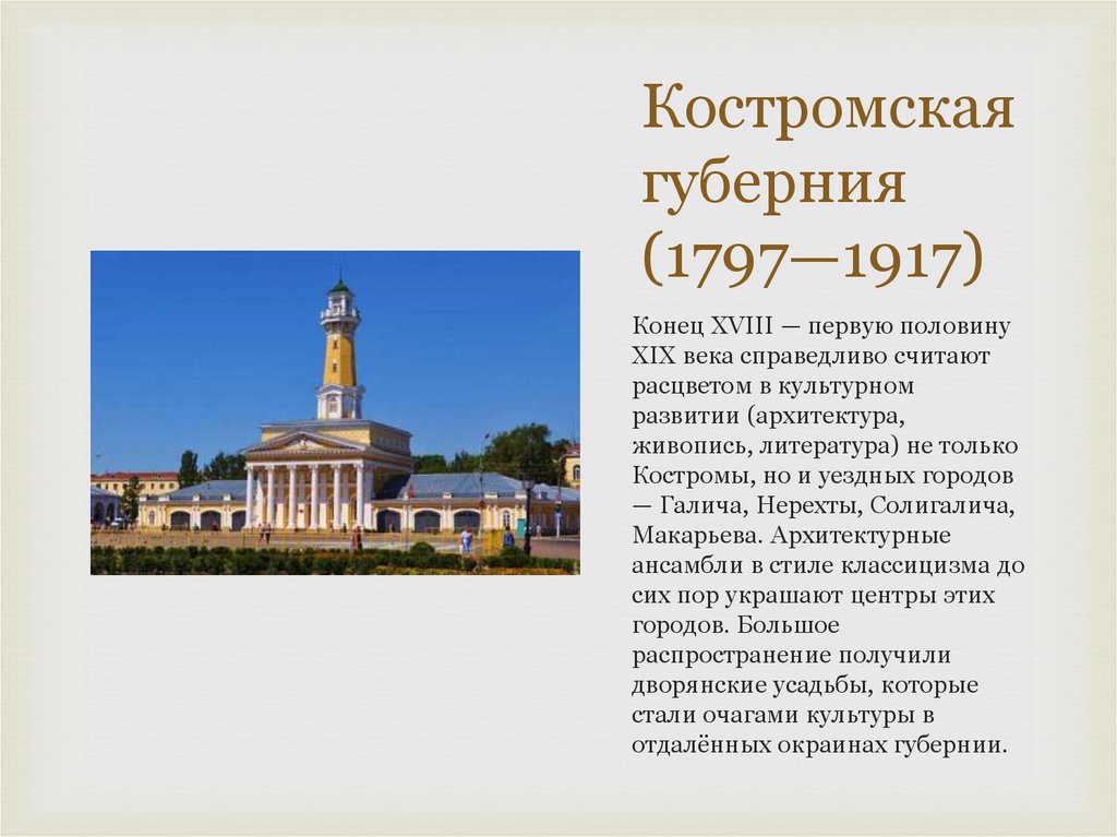 центрами. Сам губернский центр Кострома оказался оторванным от