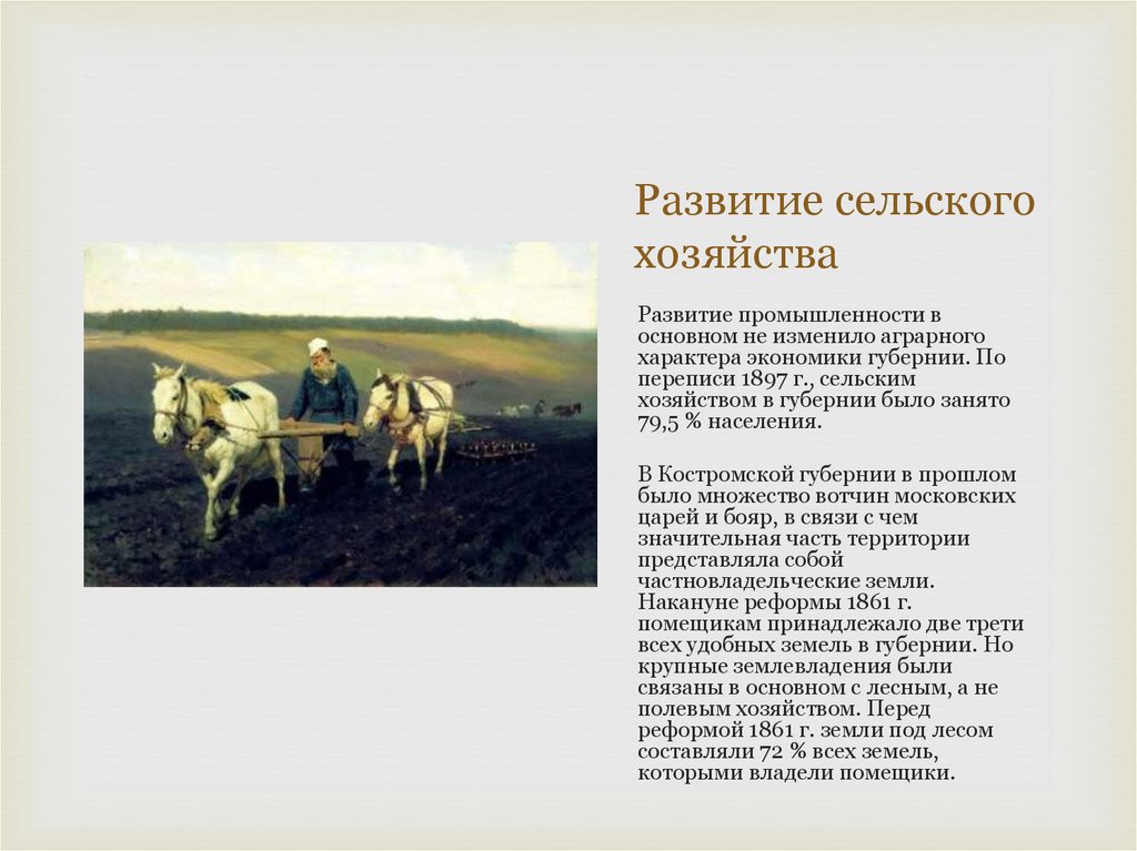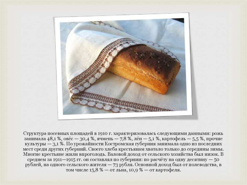 культуры — 3,1 %. По урожайности Костромская губерния занимала одно из последних