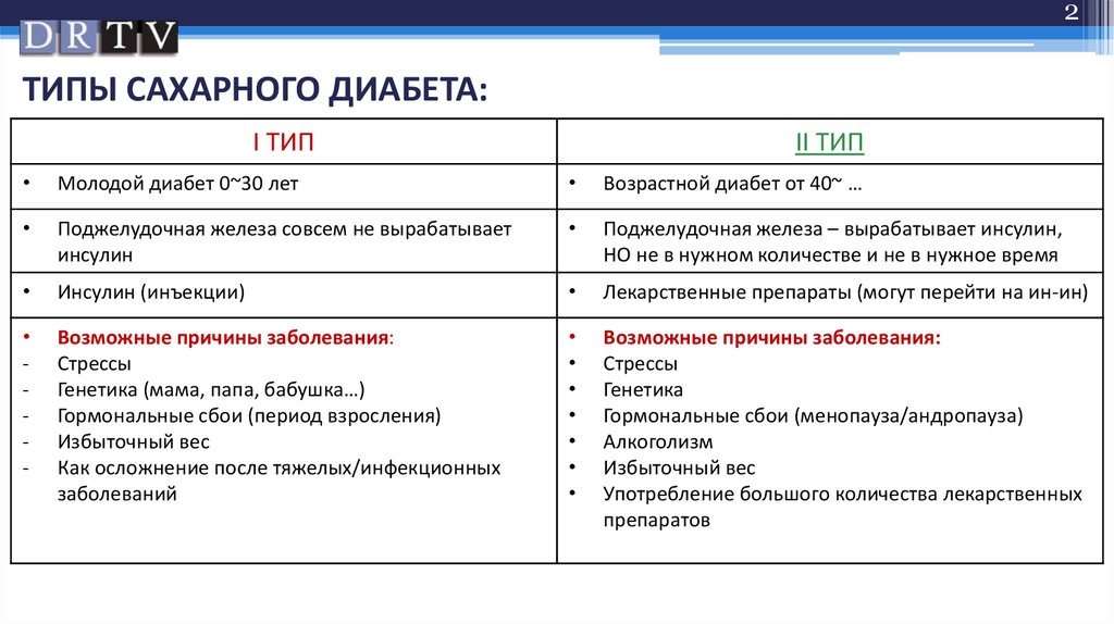2ТИПЫ САХАРНОГО ДИАБЕТА: