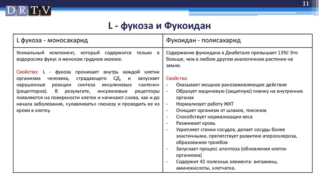 В основе действия - уникальный компонент L - фукоза, которая не встречается в растениях
