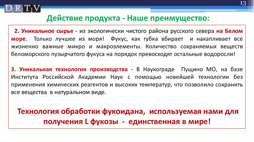 13Действие продукта - Наше преимущество: